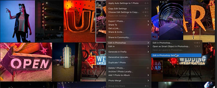 Right-Click and choose Edit in Photoshop Settings, Lightroom Desktop now includes more advanced settings directly in the interface (These settings are in Classic already).
