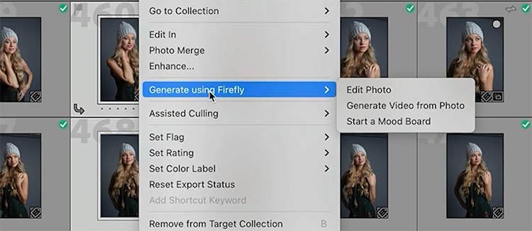 Right-click your images and choose “Start a Mood Board” to send your images to Adobe Firefly.