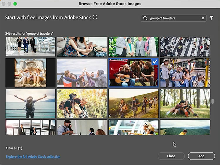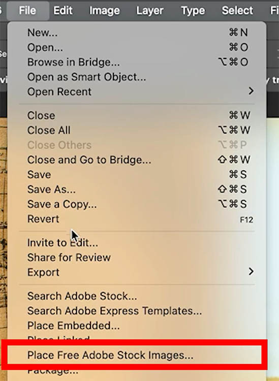 Let’s add a third image, and use the third way. Choose File>Place Free Adobe Stock Images