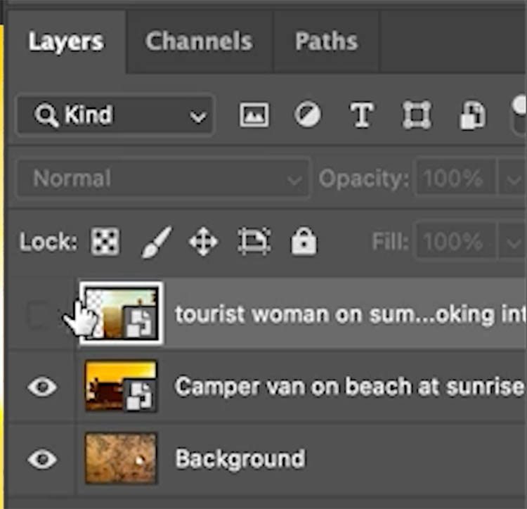 Turn the layer of the woman back on. We will make a smooth, gradual blend.