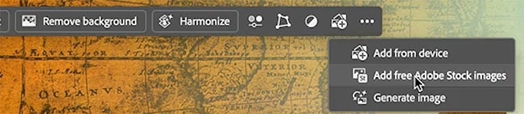 Look at the task bar, after you have placed a photo, the words aren’t on the talk bar anymore, instead it’s an icon. (This is still technically the 3rd way, but could also be seen as a 4th way of accessing the free Adobe stock).
