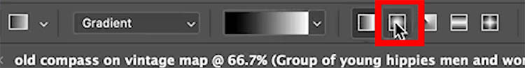 Choose the gradient tool with the same settings as before. This time use the Radial option for the gradient, its next to the linear.