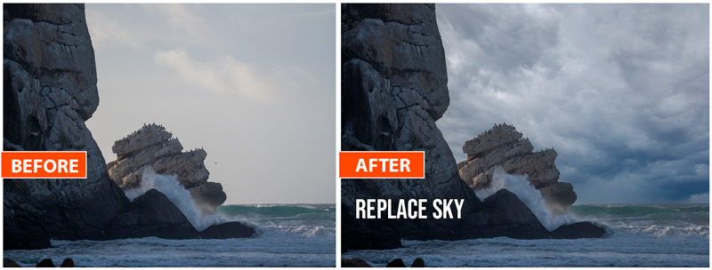 57. SKY REPLACEMENT: Change out the sky with Photoshop’s built-in skies, or use your own